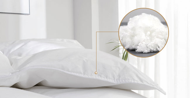 Filled with down-like 3D microfiber, Fluffy and well-distributed, without any concern for clumping or horrible odor. Great choice for those who can't use down and feathers bedding.