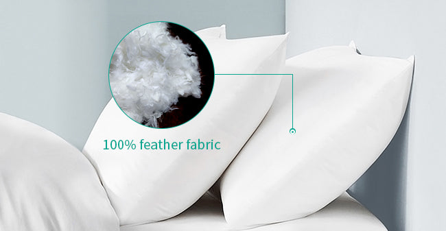 Made of 100% feather fabric. The perfect balance of supple softness and plump firmness makes the pillows supportive and cozy. Suitable for most people whether they sleep on their back, side, or stomach.